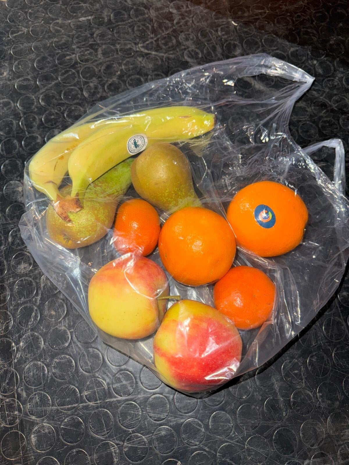 10 stuks fruit waaronder Appel, Peer, Mandarijn, Sinaasappel en Banaan.